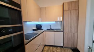 Šarke koje se ugrađuju u naše kuhinje imaju integrirani amortizer i kut otvaranja od 105° – udobnost koju nudimo standardno, odnosno bez ikakvih dodatnih troškova.